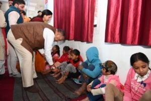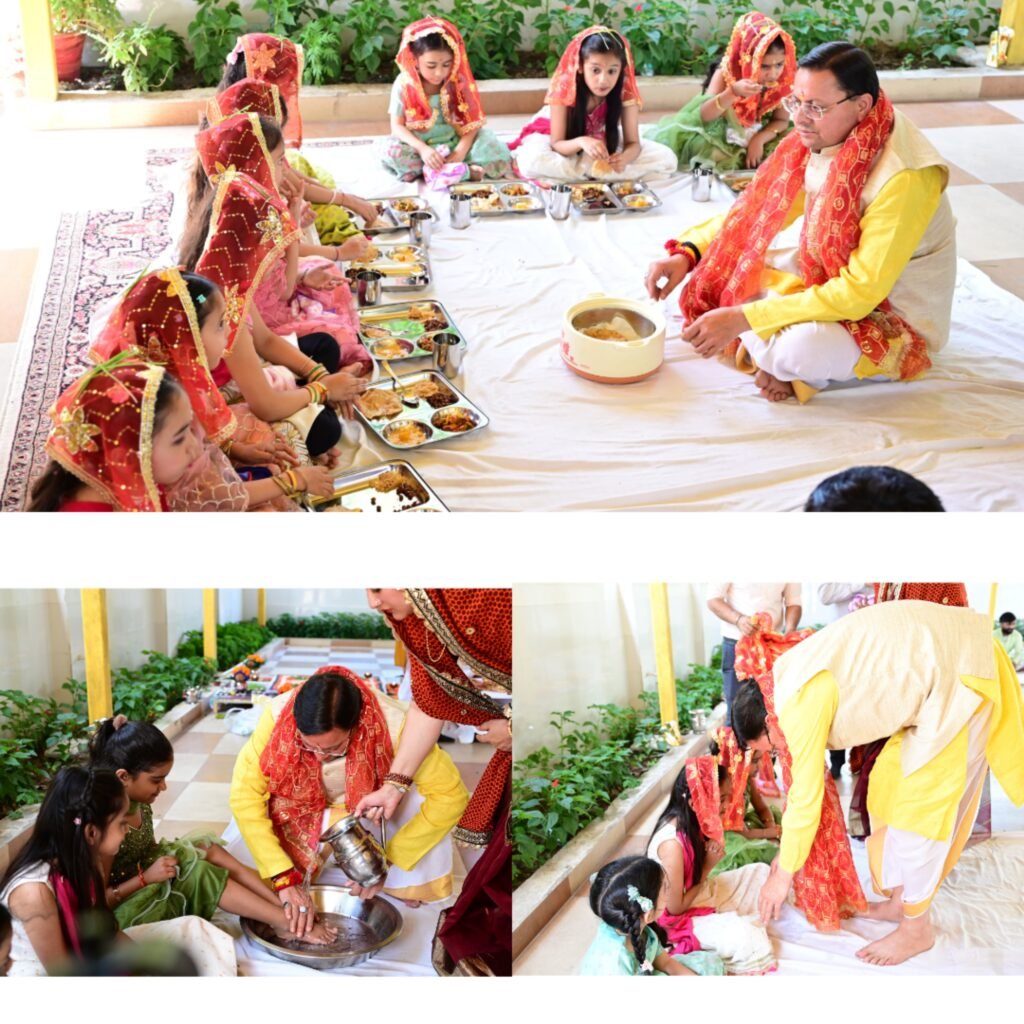 मुख्यमंत्री धामी ने पारंपरिक रीति-रिवाजों के अनुसार कन्याओं को भोजन कराया तथा उनका आशीर्वाद प्राप्त किया