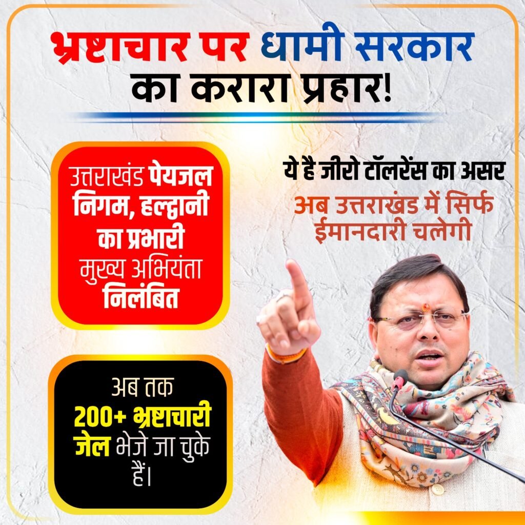 बिग ब्रेकिंग धामी का भ्रष्टाचार का प्रहार जारी :सीएम धामी के निर्देश पर पेयजल निगम का चीफ इंजीनियर निलंबित