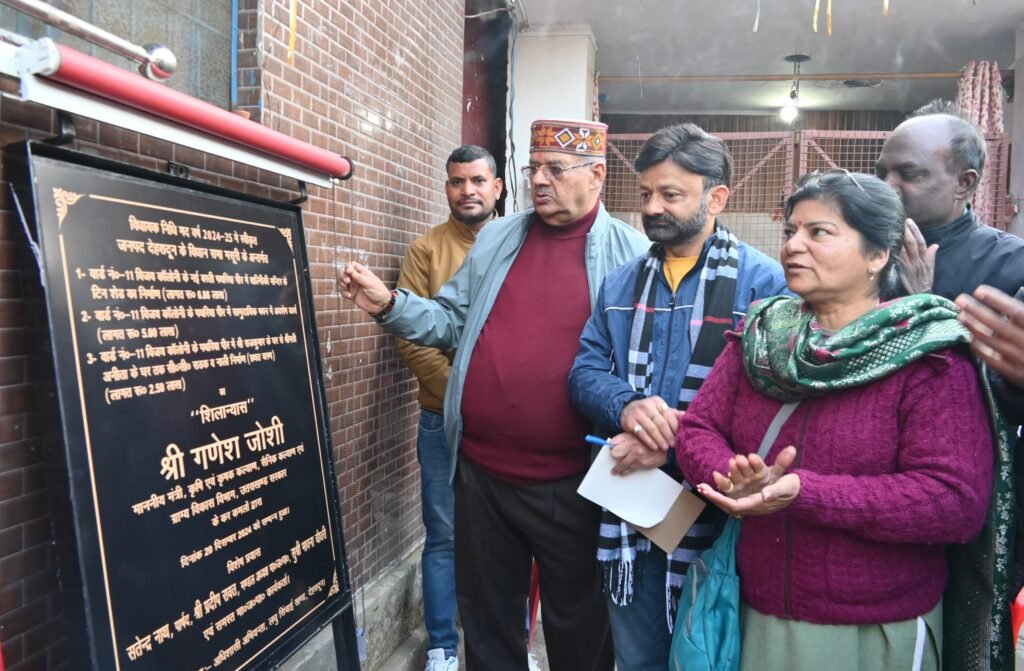 देहरादून, 20 दिसम्बर। कैबिनेट मंत्री गणेश जोशी ने आज मसूरी विधानसभा क्षेत्र के अंतर्गत देहरादून के पथरिया पीर नीलकंठ विहार में विधायक निधि से स्वीकृत वार्ड 11 विजय कॉलोनी में ₹38 लाख से अधिक के विभिन्न विकास कार्यों का लोकार्पण तथा लगभग ₹18 लाख से अधिक की लागत से विभिन्न विकास कार्यों का शिलान्यास किया गया।शिलान्यास एवं लोकार्पण कार्यों में सी.सी सड़क, पुश्ता निर्माण, सुरक्षा दीवार आदि विकास कार्यों शामिल है। इस अवसर पर कैबिनेट मंत्री गणेश जोशी ने कहा कि निश्चित रूप से इन कार्यों के पूर्ण होने पर क्षेत्र वासियों को लाभ मिलेगा। उन्होंने कहा कि डबल इंजन की सरकार प्रधानमंत्री मोदी के सबका साथ, सबका विकास, सबका विश्वास और सबका प्रयास के नारे के साथ कार्य कर रही है। उन्होंने कहा कि प्रदेश के मुख्यमंत्री पुष्कर धामी सरकार जनता की सरकार जनता के द्वार नारे के ध्येय वाक्य के साथ मूलभूत सुविधाओं को सुदृढ़ करने की दिशा में निरंतर प्रयासरत है।
