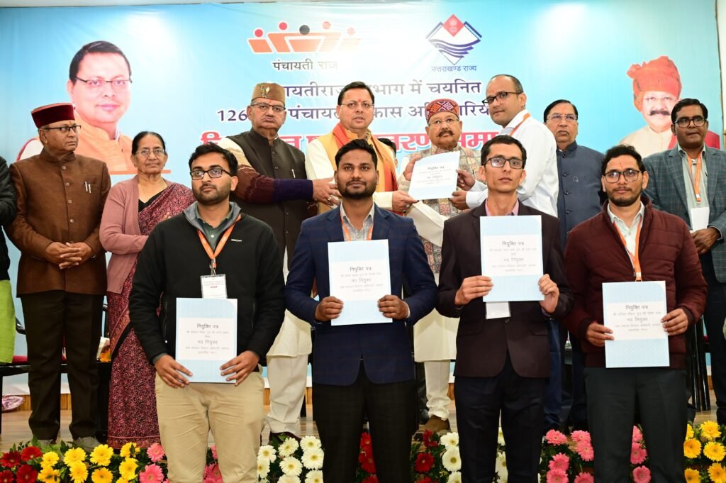 मुख्यमंत्री धामी ने पंचायतीराज विभाग के अन्तर्गत 126 नवनियुक्त ग्राम पंचायत विकास अधिकारियों को नियुक्ति पत्र प्रदान किये।
