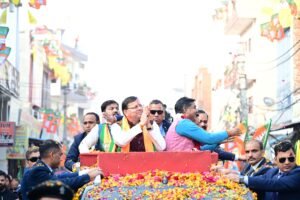 मुख्यमंत्री पुष्कर सिंह धामी ने हरिद्वार में रोड-शो कर शिवालिक नगर पालिका अध्यक्ष श्री राजीव शर्मा और भाजपा के अन्य पार्षद प्रत्याशियों के पक्ष में मतदान की अपील की। इस दौरान बड़ी संख्या में लोगों ने जगह-जगह फूल-मालाओं के साथ सीएम धामी का स्वागत किया। सीएम धामी का काफिला जिस भी गली और सड़क से गुजरा वहां पर लोग सीएम धामी का स्वागत करते नजर आए।