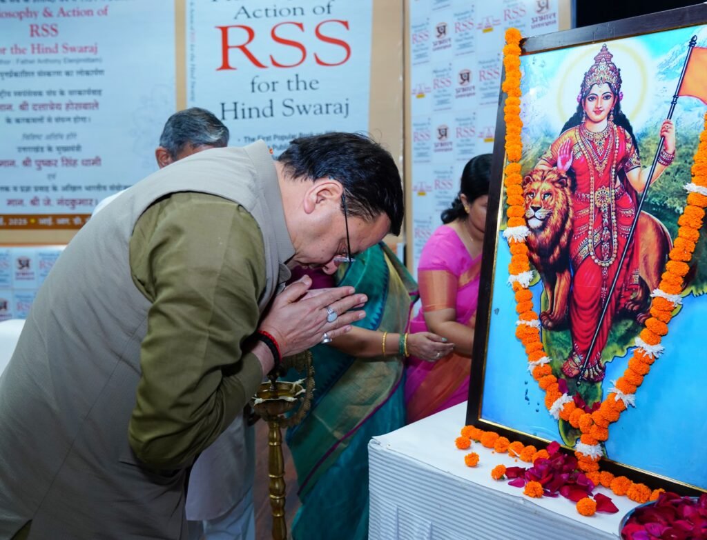 मुख्यमंत्री श्री पुष्कर सिंह धामी ने आई आर डी टी सभागार देहरादून में आयोजित कार्यक्रम में राष्ट्रीय स्वयंसेवक संघ पर पुर्नप्रकाशित पुस्तक के संस्करण “फिलॉसोफी एंड एक्शन ऑफ़ आरएसएस फॉर हिन्द स्वराज” का लोकार्पण किया | इस अवसर पर राष्ट्रीय स्वयंसेवक संघ के सरकार्यवाह,श्री दत्तात्रेय होसबोले , राष्ट्रवादी चिंतक एवं ‘प्रज्ञा प्रवाह’ विशिष्ट वैचारिक मंच के संयोजक, श्री जे. नंदकुमार भी उपस्थित थे |