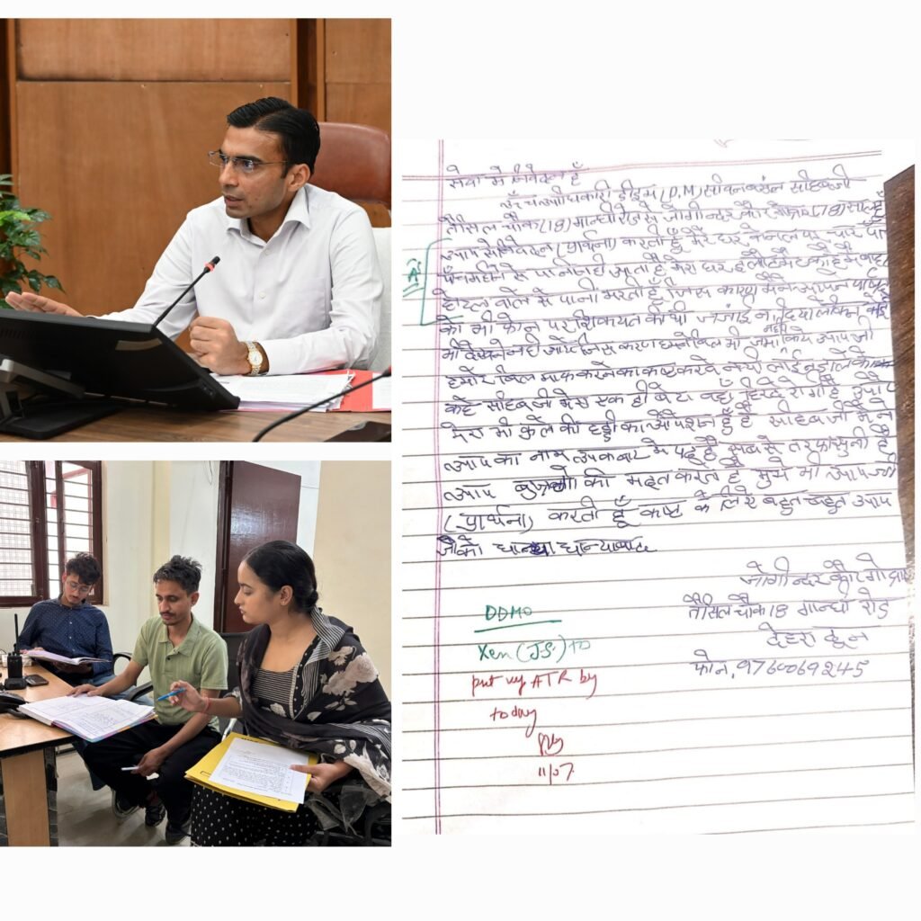 (सू.वि), जिला प्रशासन देहरादून के जनमानस की छोटी-बड़ी समस्याओं के निस्तारण हेतु त्वरित निर्णय से जहां जिला प्रशासन की सक्रियता एवं नागरिकों की प्रति प्रशासन एवं सरकार की प्रतिबद्धता को दर्शाता है। वहीं पिछले 10 महीनों में जिलाधिकारी सविन बसंल के नेतृत्व में जिला प्रशासन द्वारा लिए गए कड़े निर्णय एवं जनहित के फैसलों से जनमानस में सरकार एवं प्रशासन के प्रति विश्वास बढा है। जिलाधिकारी प्रत्येक कार्य दिवस में अपने कार्यालय कक्ष में लगभग 40 से अधिक लोगों की समस्याएं सुनते हैं तथा फरियादियों की समस्याओं के निस्तारण की स्वयं मॉनिटिरिंग कर रहे हैं।