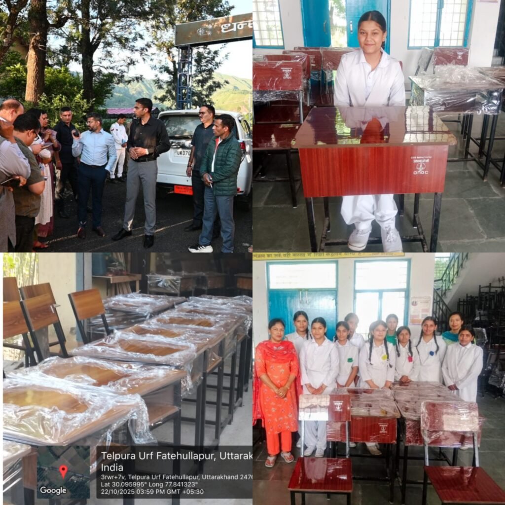 जिलाधिकारी सविन बसंल के प्रयासों से ओएनजीसी और हुडको ने विद्यालयों को फर्नीचर सेट उपलब्ध कराए।