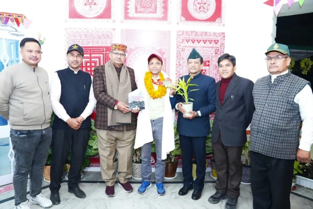 मंत्री गणेश जोशी ने पूर्व सैनिक कलम सिंह बिष्ट को शॉल ओढ़ाकर एवं पौधा भेंट कर सम्मान दिया तथा बधाई एवं शुभकामनाएं देते हुए उनका उत्साहवर्धन किया