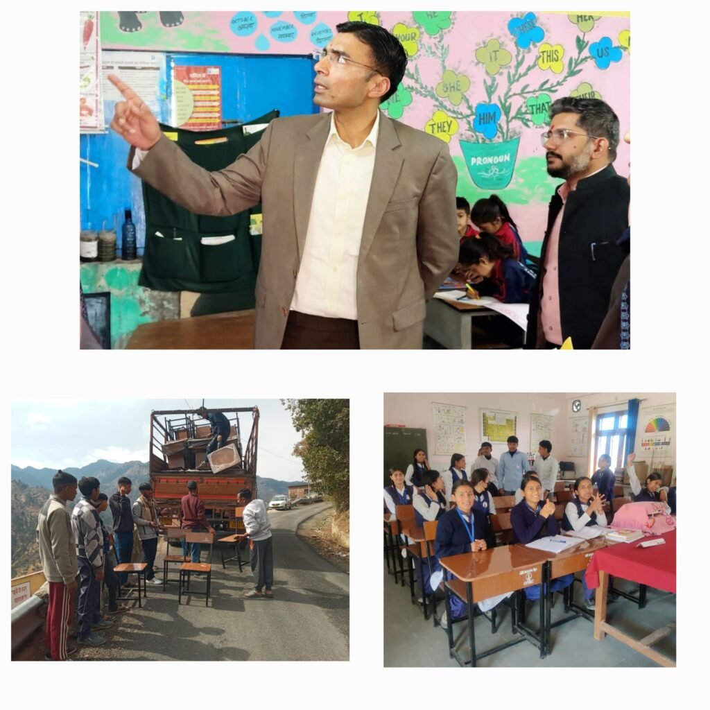 देहरादून दिनांक 17 अप्रैल 2025, (जि.सू.का),  मा0 सीएम की सकारात्मक ऊर्जा से प्रोजेक्ट ‘उत्कर्ष’ के तहत् सरकारी स्कूलों को पठन-पाठन आधुनिक तकनीक से स्कूलों को स्मार्ट बनाने के डीएम सविन बंसल के प्रयास धरातल पर उतरने लगे हैं। जिसके अन्तर्गत वित्तीष वर्ष 2024-25 मार्च में दुर्गम क्षेत्र चकराता, कालसी के स्कूलों को फर्नीचर उपलब्ध करा दिया गया हैं तथा शेष विकासखण्ड विकासनगर, सहसपुर, रायपुर व डोईवाला में वित्तीय वर्ष 2025-26 के अन्तर्गत फर्नीचर आच्छादित करने हेतु ओएनजीसी ने  कार्य आदेश जारी कर दिया है।  स्कूलों को स्मार्ट बनाने के इस कार्य में ओएनजीसी व हुडको द्वारा सहयोग किया जा रहा है। जिलाधिकारी के इस महत्वाकांक्षी प्राजेक्ट में हुडको द्वारा स्कूलों में पठनपाठन व्यवस्था हेतु आधुनिक उपकरण एलईडी के लिए 2.5 के कार्य प्रोसेस में हैं, जबकि ओएनजीसी ने 1.5 करोड़ के फर्नीचर एवं उपकरण में सहयोग कर रही है। ओएनजीसी ने विकासखण्ड चकराता, कालसी स्थत सरकारी स्कूलों को वर्ष 2024-25 में फर्नीचर युक्त कर दिया है तथा वर्ष 2025-26 के लिए विकासखण्ड डोईवाला, रायपुर, विकासनगर व सहसपुर स्थित स्कूलों में फर्नीचर उपलब्ध कराने की प्रक्रिया शुरू कर दी है।