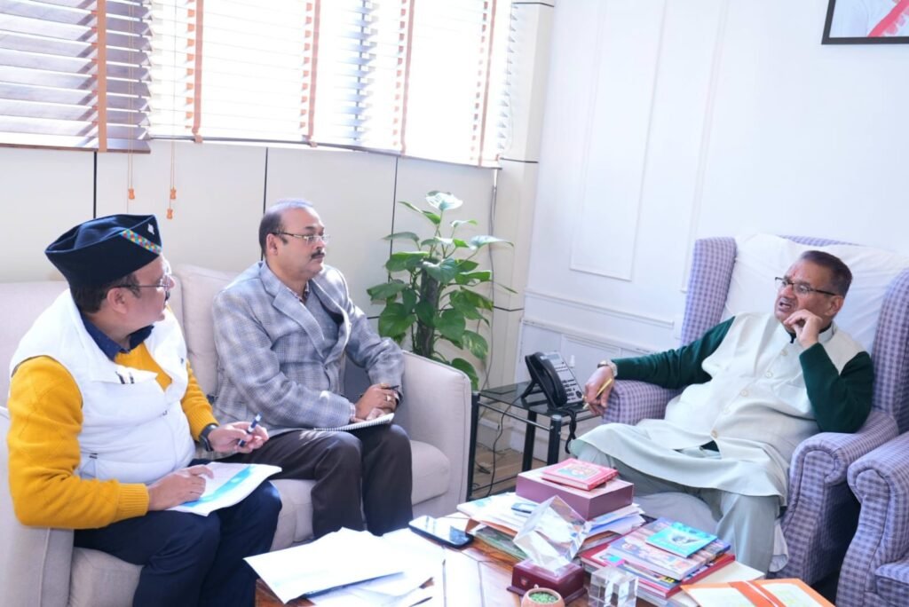 पीएमजीएसवाई से संबंधित अधिकारियों के साथ विभागीय समीक्षा करते ग्राम्य विकास मंत्री गणेश जोशी