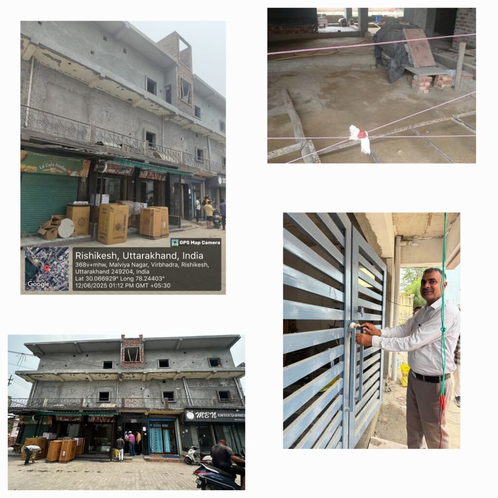 सोहन लाल गोयल, सुनील सैनी, अकांक्षा रयाल, रमेश चन्द्र धर्मपाल रावत आदि द्वारा तुलसी विहार काॅलोनी निकट रेलवे क्रासिंग महालक्ष्मी मंदिर श्यामपुर ऋषिकेश में निर्मित दुकानों व भवन पर शीलिंग की कार्यवाही की गयी।