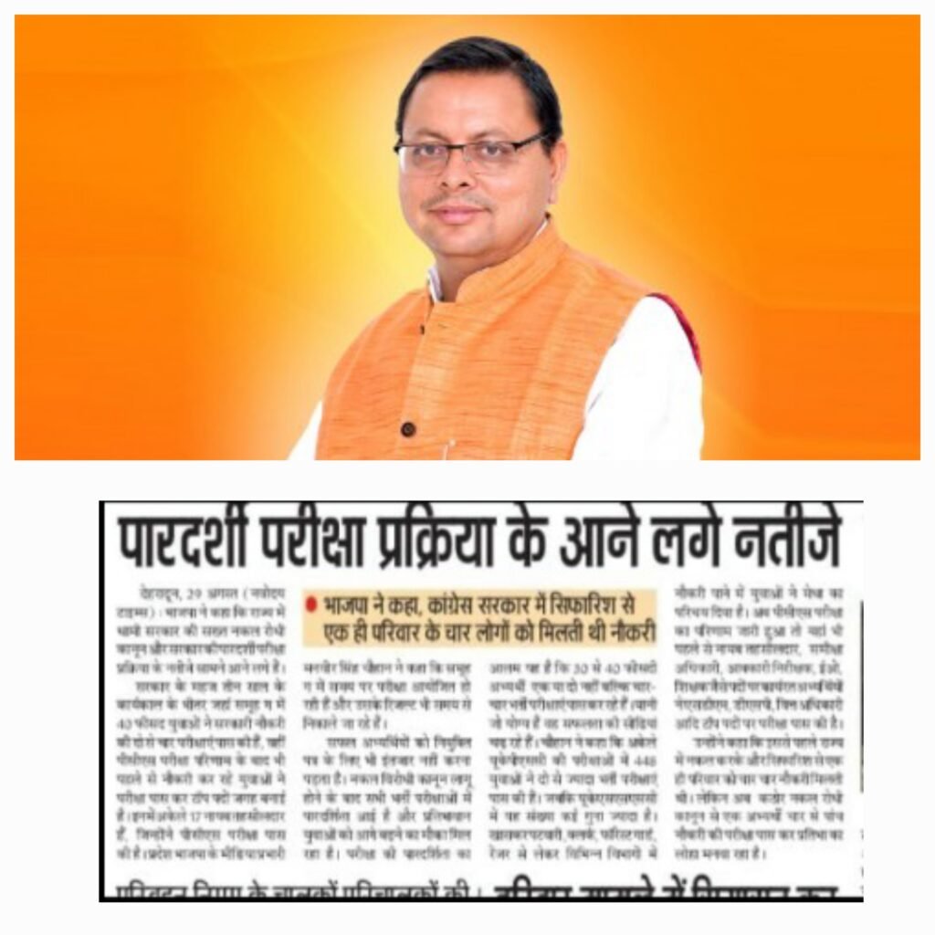 धामी सरकार मे एक नहीं तीन से चार प्रतियोगी परीक्षाओं में मिल रही सफलता,
