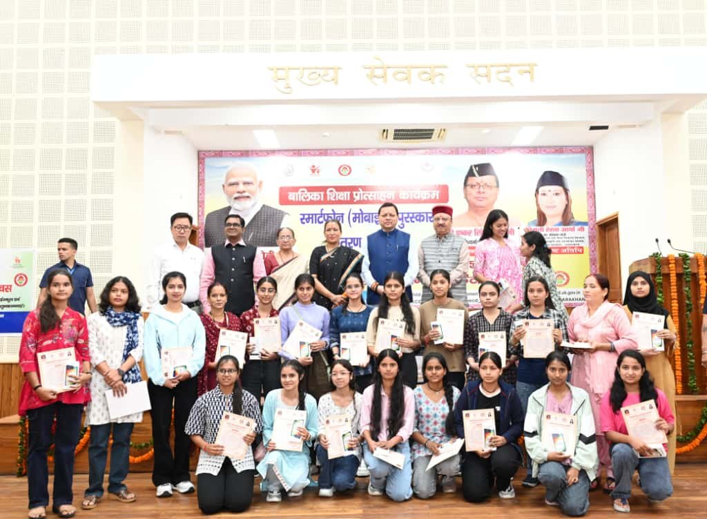 मुख्यमंत्री श्री पुष्कर सिंह धामी ने शनिवार को मुख्यमंत्री कैम्प कार्यालय स्थित मुख्य सेवक सदन में अंतरराष्ट्रीय बालिका दिवस के अवसर पर आयोजित बालिका शिक्षा प्रोत्साहन कार्यक्रम में प्रतिभाग किया। महिला सशक्तिकरण एवं बाल विकास विभाग द्वारा आयोजित इस कार्यक्रम में 326 मेधावी बालिकाओं को स्मार्टफोन प्रदान किए गए। जनपद स्तर पर हाईस्कूल एवं इंटरमीडिएट की परीक्षा के प्रथम तीन टॉपर बालिकाओं एवं विकासखण्ड स्तर पर टॉपर बालिकाओं को मुख्यमंत्री द्वारा पुरस्कृत किया गया।